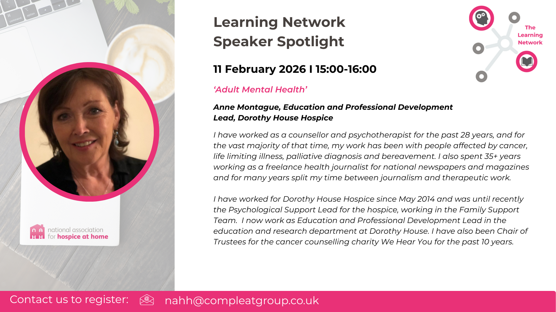 Denise Charity from Strathcarron Hospice shares her thoughts on the NAHH Learning Networks below: